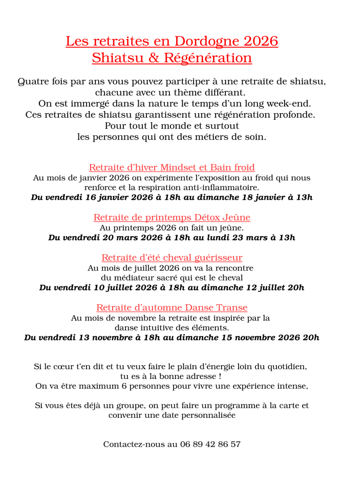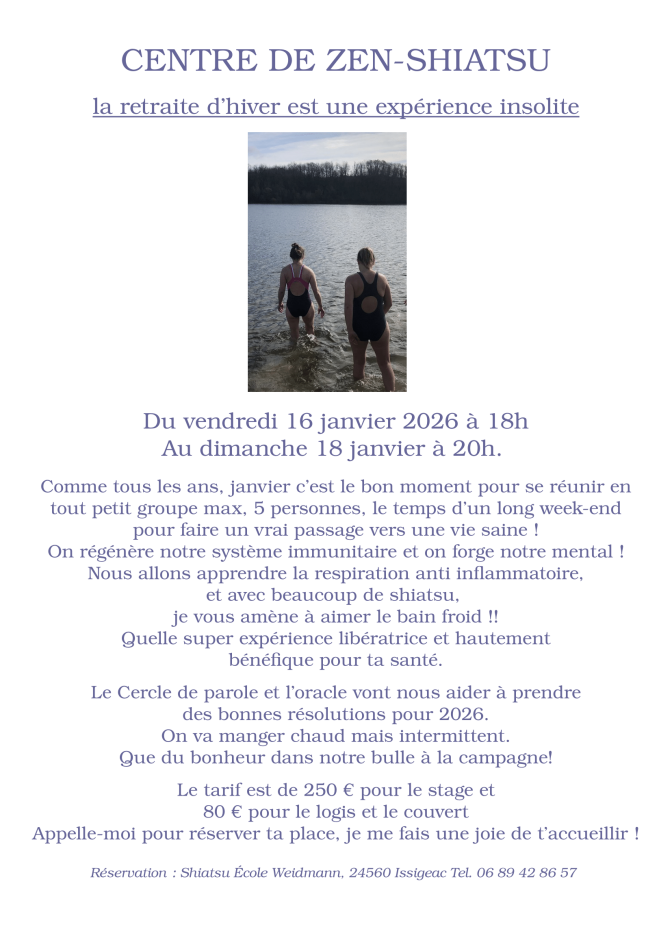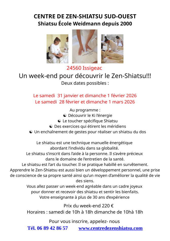 Tel : 06.89.42.86.57. Email : centredezenshiatsu@orange.fr